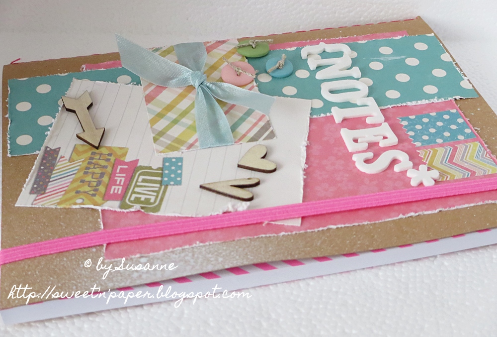 Ich habe mich für die obere Waagerechte entschieden (Bänder-Knöpfe-Holz) und habe ein Notizbuch gepimpt.